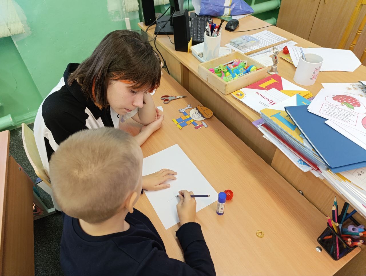 Уникальность события заключается в том, что занятие было организовано старшими школьниками — учениками 7 А класса в рамках социально - педагогического проекта «Ориентиры Жизни», проявившими искреннюю заботу и внимание к развитию творчества малышей.