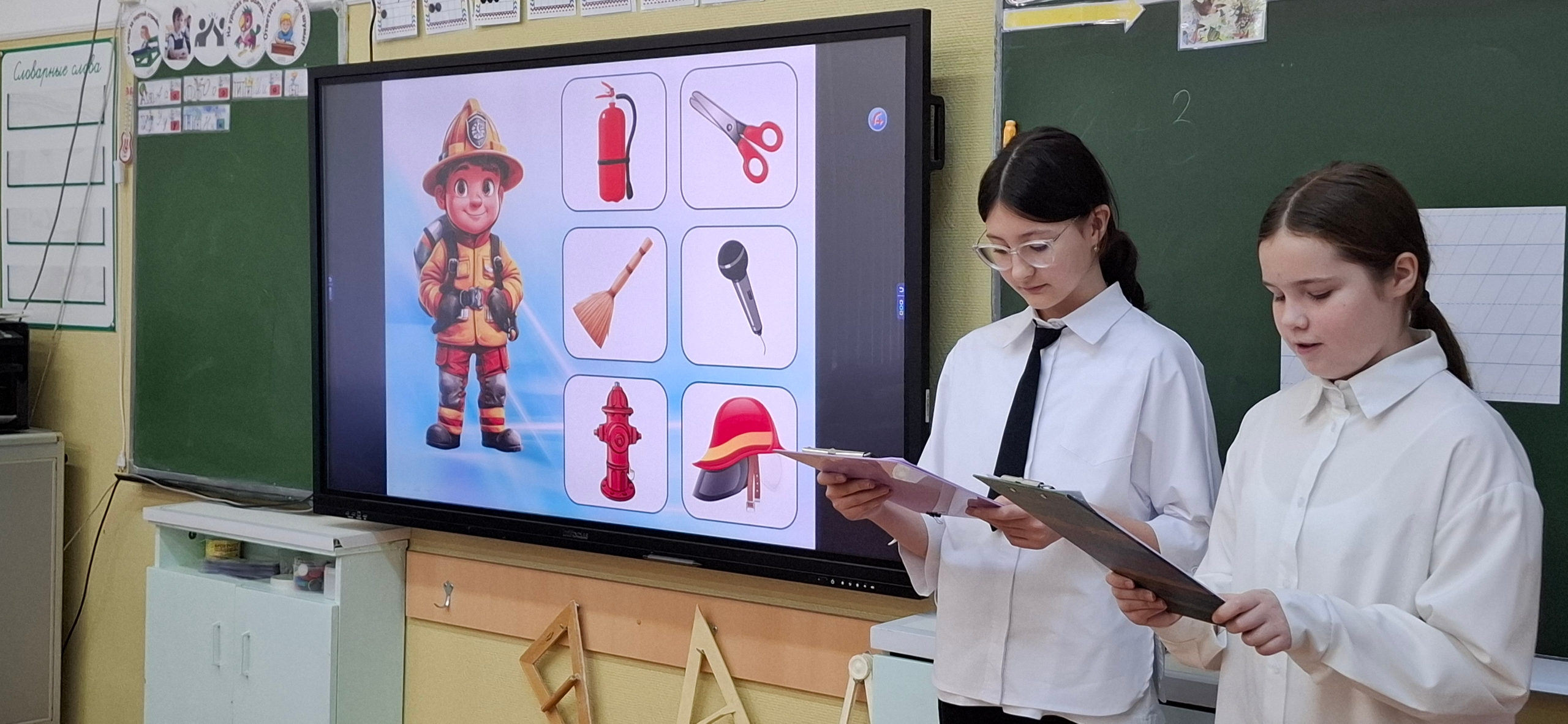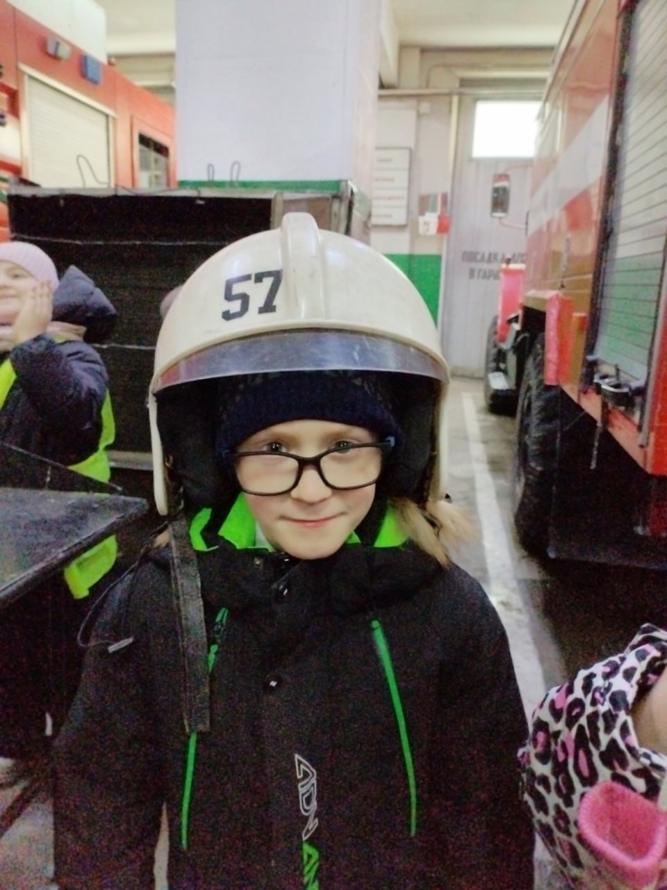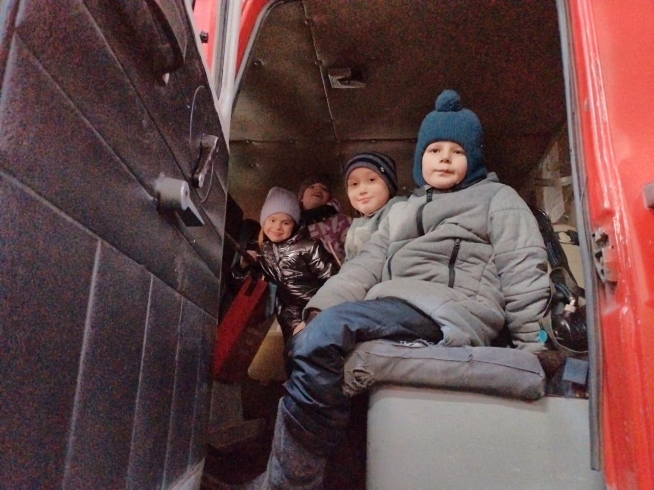 Во время экскурсии первоклассники увидели пожарные машины, оборудование, форму пожарных, а также услышали интересные рассказы о работе спасателей.