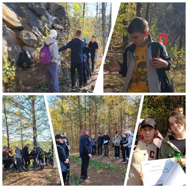 Кирил Беденин: «Светлана Викторовна собрала нас пойти в лес, посмотреть и забрать разные породы, кристаллы. Мы брали с собой лопаты, молотки, перчатки. Вместе с классом пробирались через лес, чтобы прийти к супер прозрачному озеру. Светлана Викторовна сказала, что озеро окрашено в изумрудный цвет из-за примеси меди, а рядом озеро синего цвета, там много железа и марганца. На топографической карте, которой 100 лет нет озер, есть карьеры. Мы поиграли, вспомнили правила изображения холмов и ям, что такое бергштрихи и как здесь они обозначены не черточкой, а треугольником. Около воды был отвесный склон. Мы подсчитали, это уровень трех этажей, как на чертеже Ауэрбаховского карьера 1913 года. Здесь много было различных кристаллов. Мы всем классом собирали кварц прозрачный, кварц матовый, кварц желтый, кальцит, гранат, эпидот, гематитовые розы. Изюминка – это приключения. Это красота места, таких кристаллов и пород не видел раньше, в школе, это не то, я сам нашёл. Я соблюдал технику безопасности, как правильно соблюдать тактику туризма. Светлана Викторовна учила нас правильно ставить ноги (лесенкой) на подъеме и спуске обязательно, как не упасть и не помешать движению рядом идущего, строго соблюдать дистанцию в лесу, и спусках, как помочь другим ребятам. Этот поход – учебно- исследовательская экспедиция сдружил наш класс еще больше, благодаря помощи друг другу не в школе. Мы увидели новые виды растений. Грибов было очень много, мы их не трогали, оставляли для животных. В будущем я хочу стать хирургом. Сегодня я впервые задумался на тему, какими инструментами делают операции людям, из какого сплава эти металлы, а может я сделаю из этого железа с марганцем что то новое, еще не открытое раньше, чтобы принести пользу больному. Вот она геология для чего нужна. Для меня это мероприятие больше было приключением, мне понравилось и я не против ещё таких походов Квест - Ралли в течении года!»