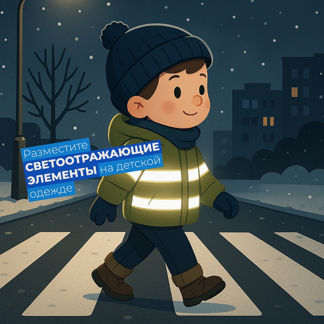 В связи с коротким световым днём для безопасности ваших детей на дорогах просьба обеспечить их светоотражающими элементами.