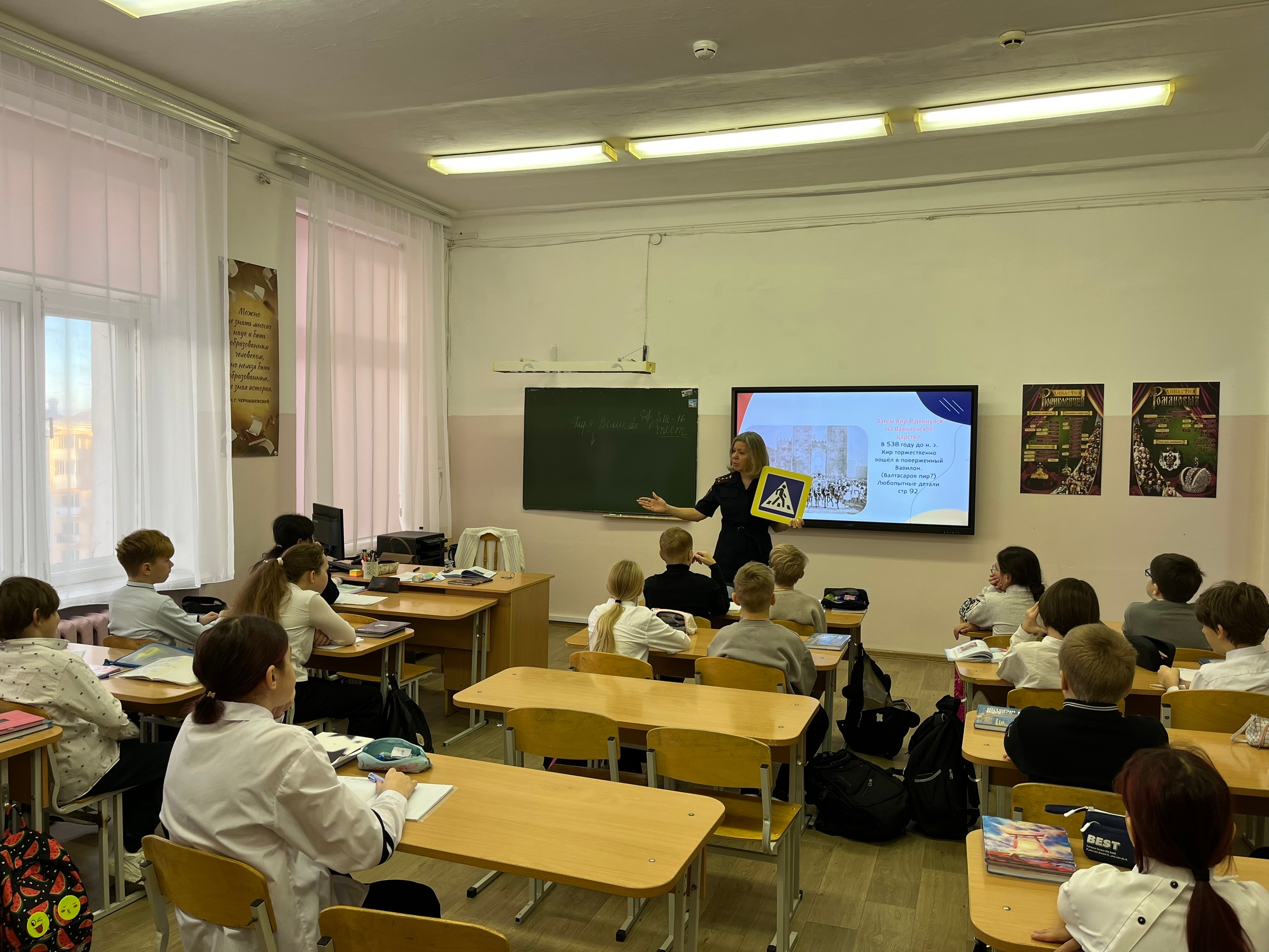 С целью снижения детского дорожно-транспортного травматизма, сегодня в нашей школе были проведены беседы по разъяснению правил безопасного поведения на дорогах. Инспектор Госавтоинспекции - Бершауэр М.А., напомнила, что при переходе проезжей части, необходимо убедиться в безопасности, убрать телефон, снять наушники и капюшон, закрывающий боковой обзор. А так же, напомнила о необходимости ношения световозвращающих элементов в темное время суток.